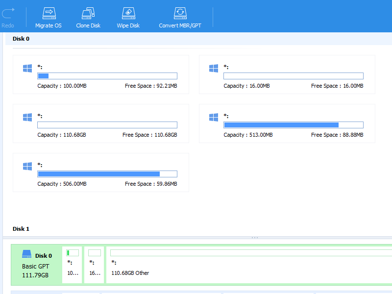 Tak jsem doma, za chvili dodam screeny z AOMEI.
