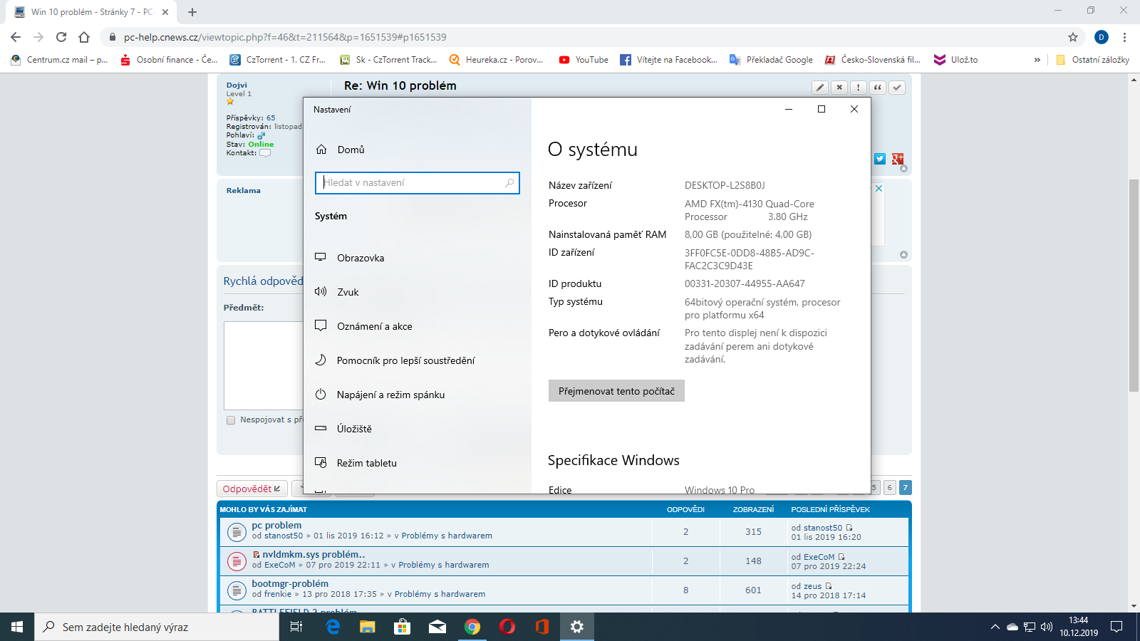 Před tím jsem měl win7 a žádný problém dělá to až jsem tam dal ty win10 tak že bude určitě problém v tom že to není kompatibilní asi.