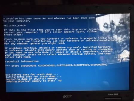 To vypovídá za vše. Při bootování dej F8 a zkus nabootovat do módu obnovy. Poté klikni na automatickou opravu, restartuj a pak se ozvi.REGISTRY_ERROR