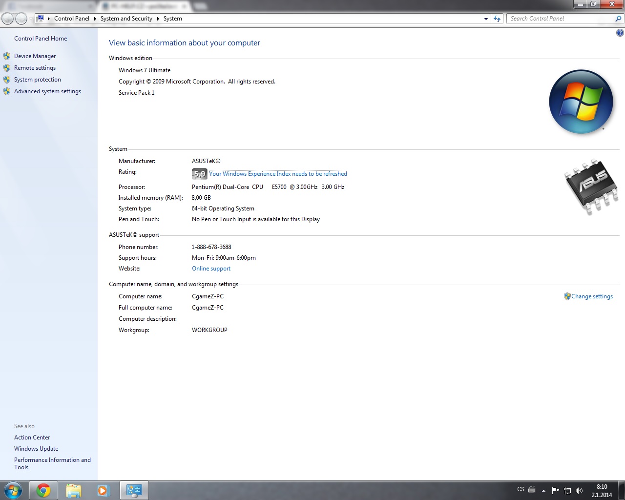 Jak zjistím že mám aktuální Windows 7 Ultimate 64 bit ve vlastnostech není nic napsáno viz. foto
