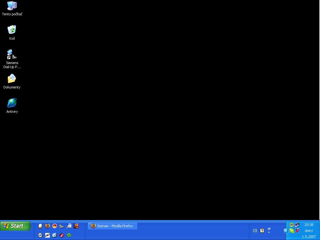 Černou plochu si umíme představit. Tím jsi nám moc nepomohl v řešení. Doporučuji nejprve vyčistit disk, pak dát kontrolu disku s opravou chyb. Pro jistotu sem vlož log z HJT, někdo znalý se na něj snad mrkne.