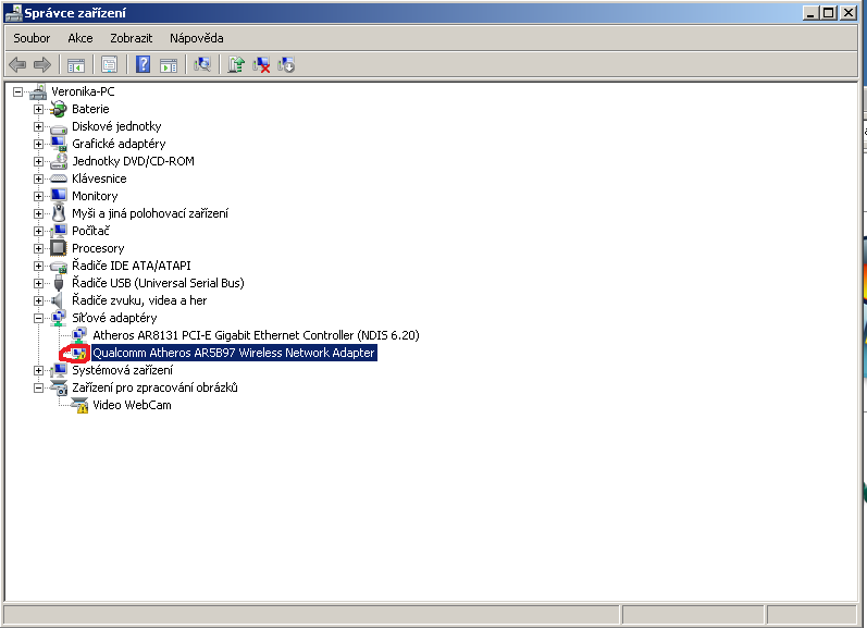 správce zařízení s nefunkčníma ovladačema na wifi kartu