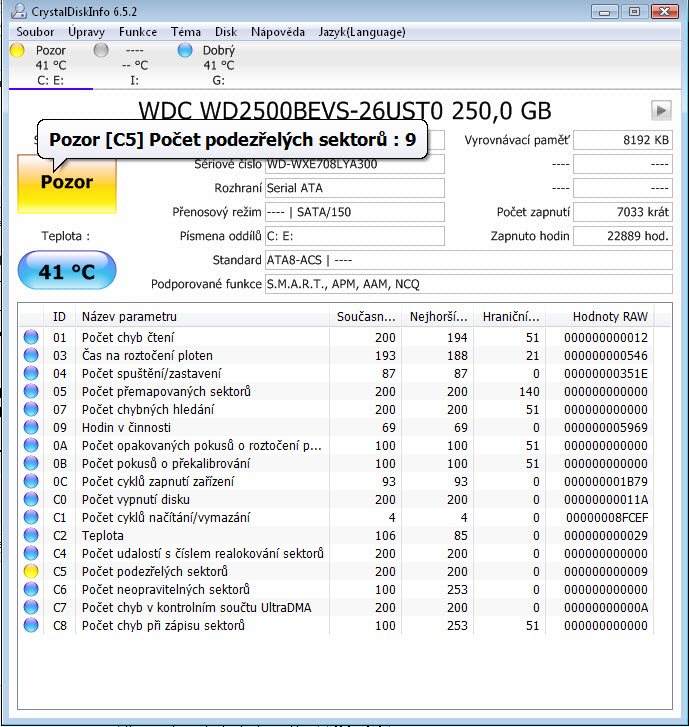 Dobrý den. Mám podezření že můj hd už dožívá a tak jsem zakoupil 3 tb disk segate a na něj jsem zazálohoval pro jistotu všechna data. Na nic jiného ho nepoužívám. Chtěl jsem zkontrolovat můj kořenový hd u notebooku harddriverinspectorem a jaké bylo mé zděšení když mě varuje právě na ten můj záložní 3tb že v kritickém stavu před havárií. Disk byl nový a je rok starý. Přivezl mě ho kamarád z USA, jen jsem k němu musel zakoupit redukci na zástrčku. Nakolik se dá tomuto informacím z harddriverinspectoru software věřit? Report z kontroly v příloze. Děkuji za radu.