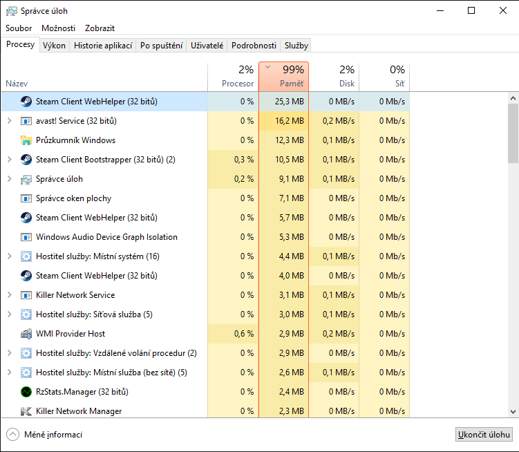 Re: Windows 10 po aktualizaci zabere celou RAM