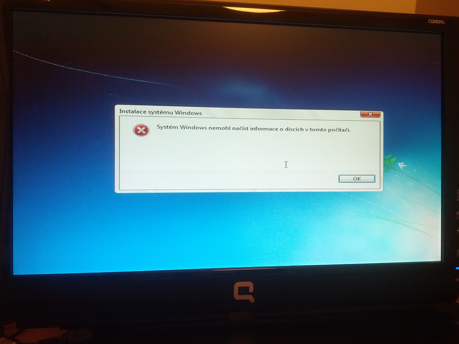 Při instalaci win7 Pise pc ze nemohl načíst informace o hdd
