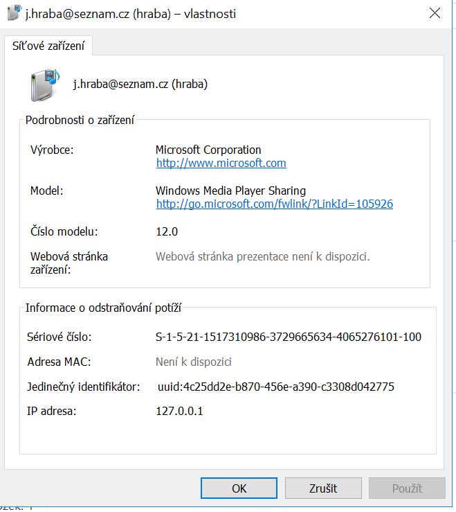 Hraba píše:Zařízení jsem povolil už asi kdysi - všechna média, kde PC je také. Síť je propojená. Ale video z PC na TV nejede.
