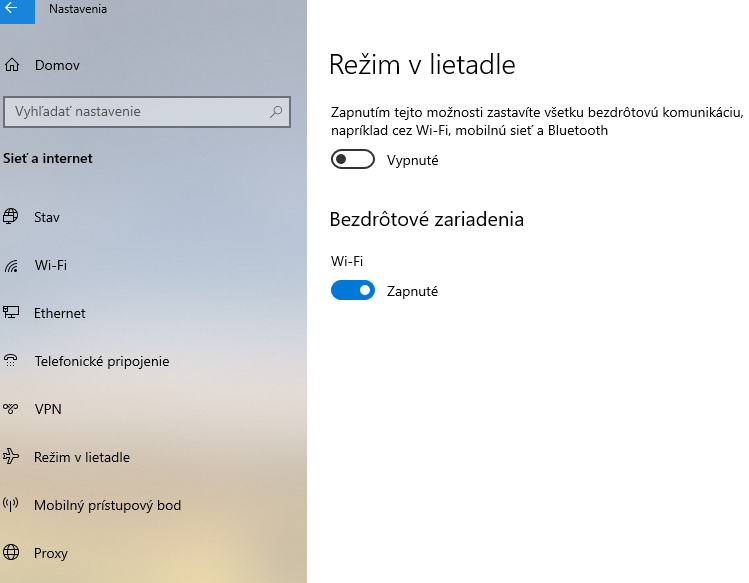 Restart modemu nepomáhá, Když se dívám na funkci W10 oznámení - tak je tam oznámení Letadlo.