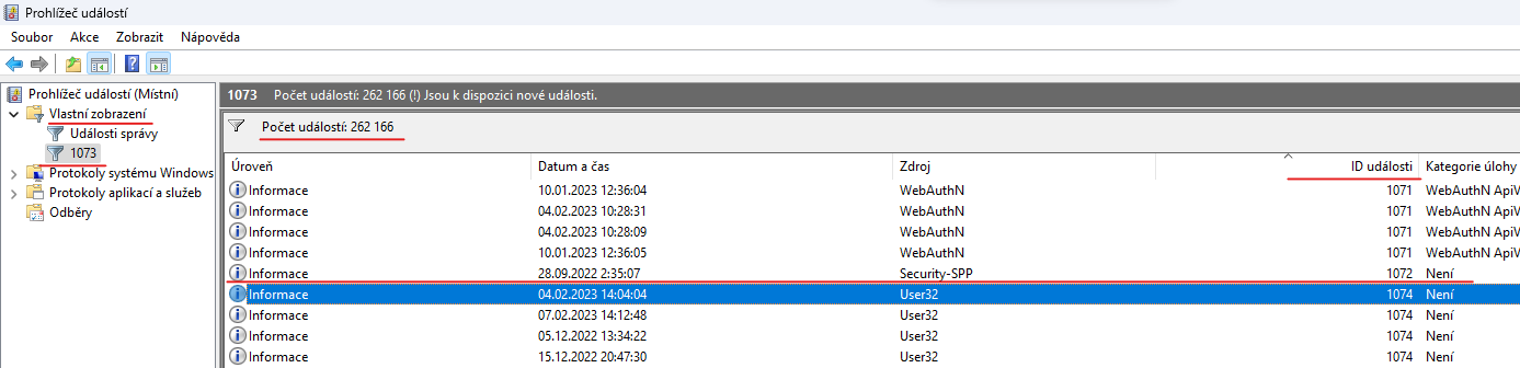 Zkus si spustit eventlog / Systém a hledej ID události 1073. Opravdu tam nic takového nemáš?