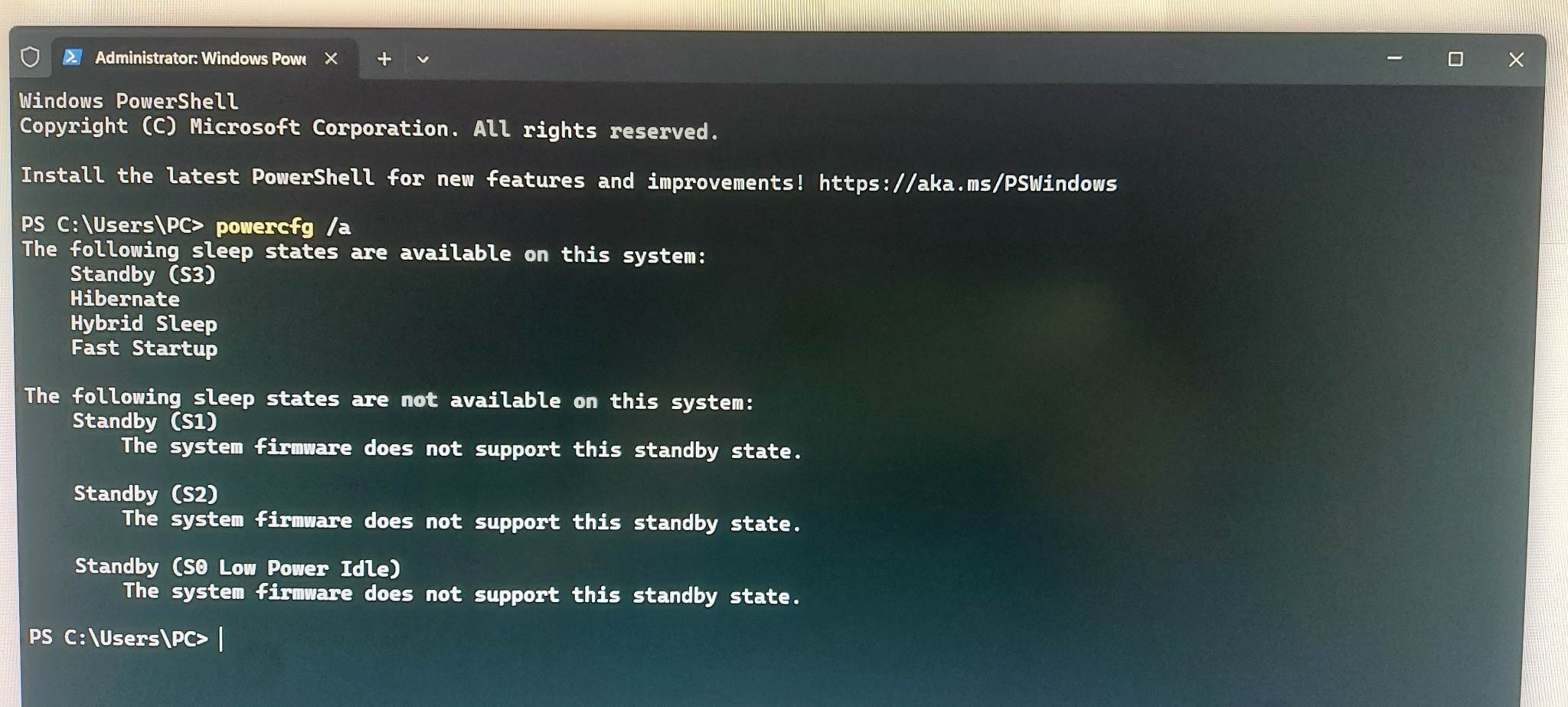 uodate : Tak na internete som zistil ako skontrolovat moj aktualny stav spankoveho rezimu a zistil som toto. A podla tohoto niesu tieto stavy v mojom pc podporovane. A to su akurat tie ktore potrebujem.