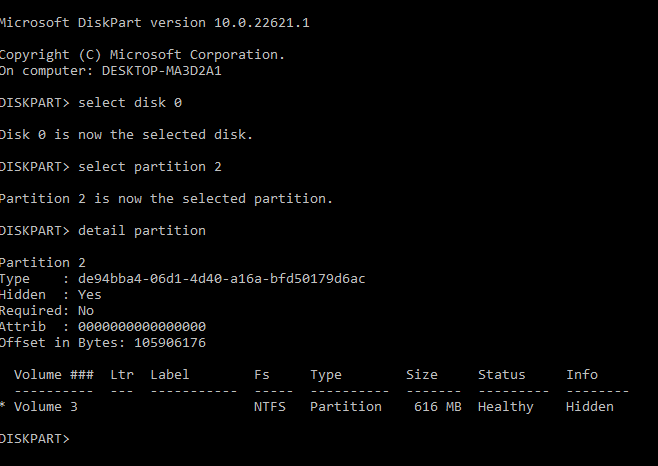 Diskpart už u part.2 hlási required: yes