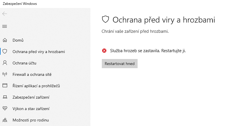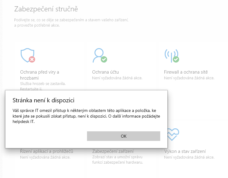 Po spuštění se Windefender nerozjel . Jinak VPN jsem neaktivoval aspoň teda o tom nevím . Možná nějak nevědomky . Myslíš že je to může spůsobovat ono ? Nejspíše jsem něco do PC natáhl :crazy: Jako když zapnu PC a jdu do nastavení Win zabezpečení , tak ikona se tváří že dobrý ,ale bez fajfky zelené jen je tam pod ní napsáno Neznámé a pak během chvilky už jen upozorní že PC není chráněno před viry a zapněte antivirovou ochranu . po kliknutí na hlášku v panelu vpravo už se dostanu do nastavení win zabezpečení a zbytek už známe :roll: