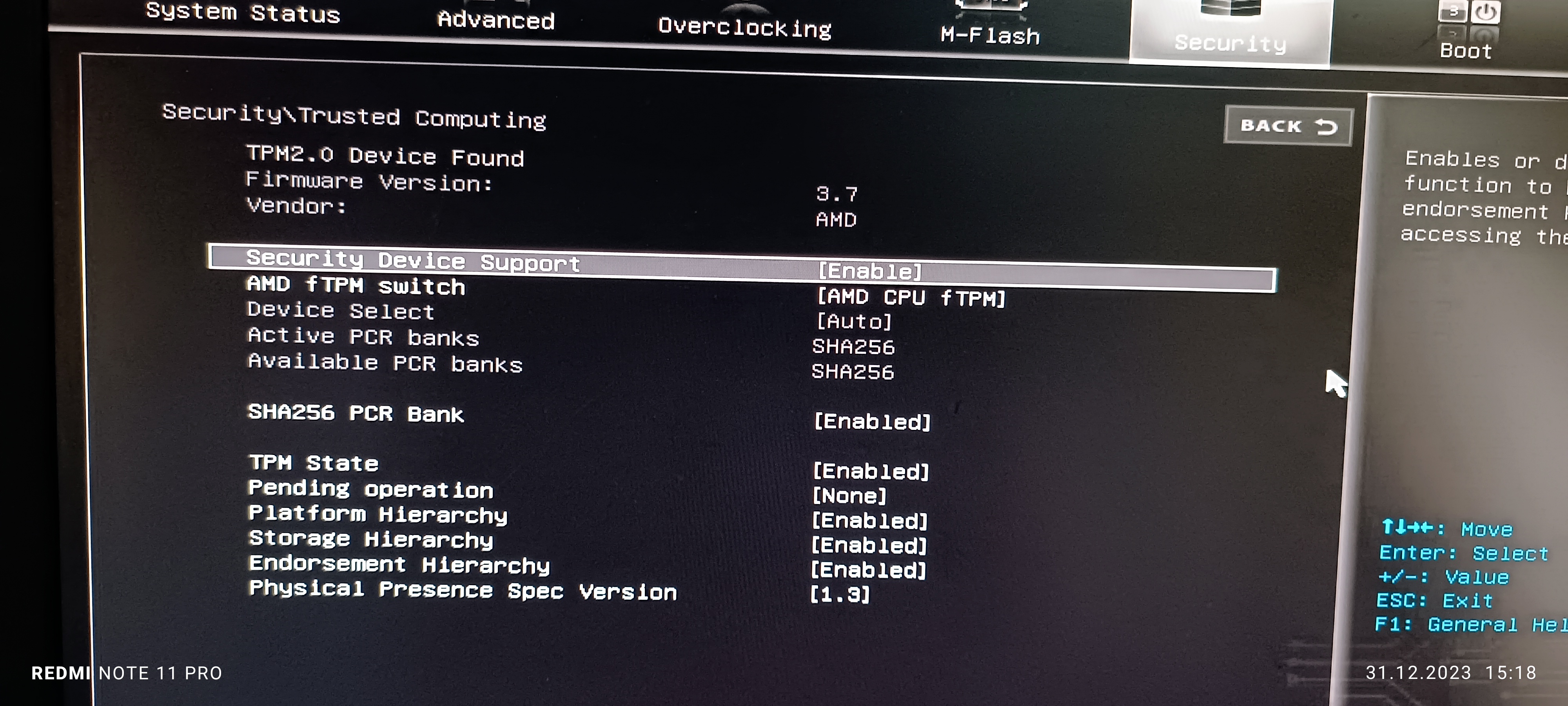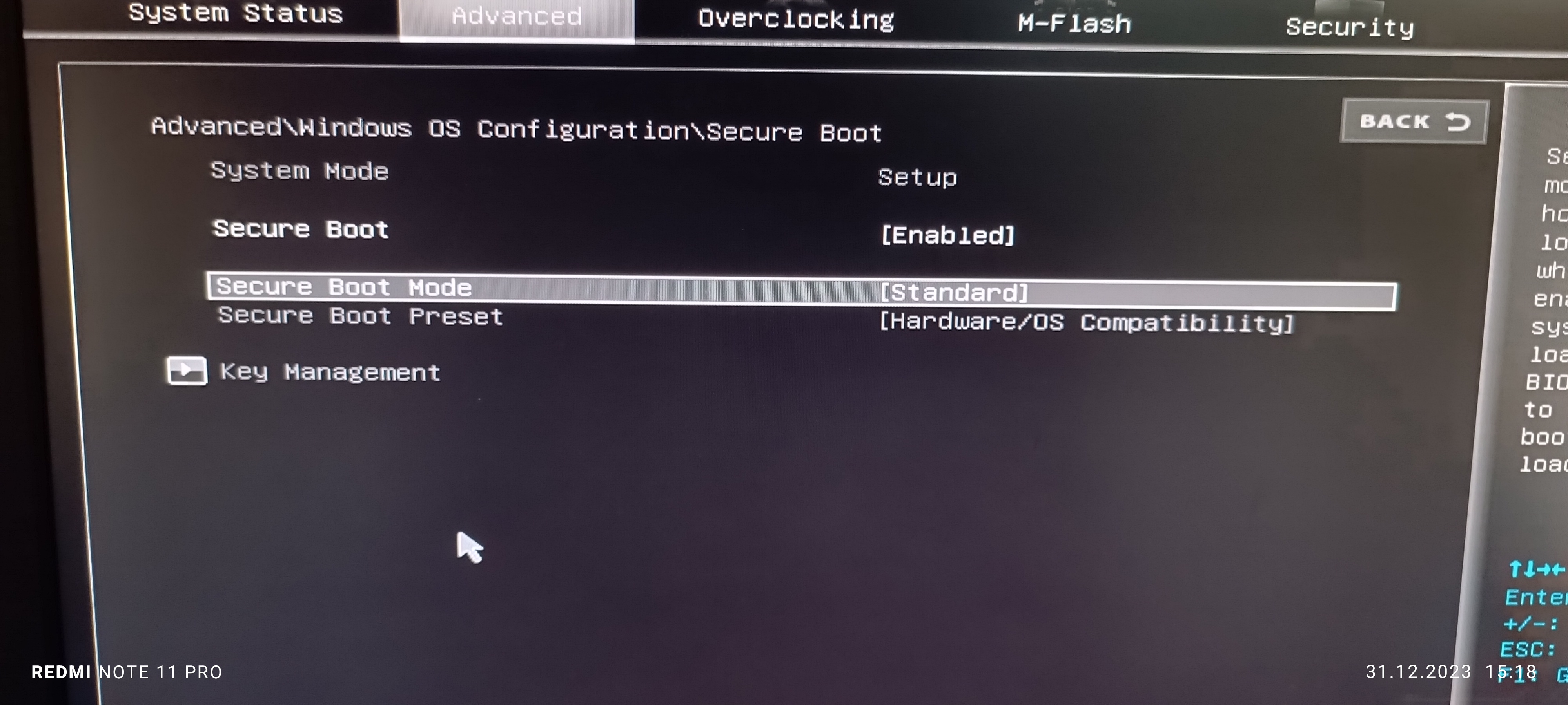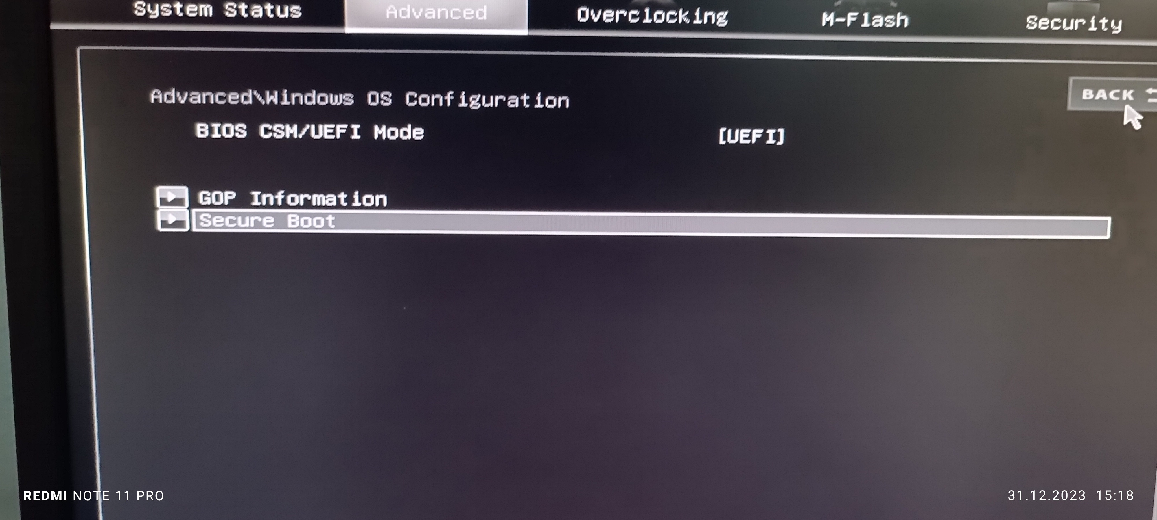 BIOS: Změním na UEFI, secure boot enabled, vše dle doporučení.