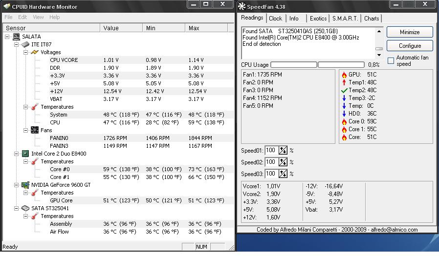 mám problém s přehřívaním PC, ja jsem byl pryč a bratranec hrál asi od 15-00 do19-15 FIFU pořád..jak jsem mu řek že ma jít pryč tak jsem si zapl hru Dragon Age hral jsem asi 5 minut a začal mi pipat Speakr v kompu tak jsem hru vypl a PC se uklidnilo :) koukl jsem se na SpeedFan (teploty jsou vyfoceny asi minutu po pípaní bylo tam 61°C +- ) už jednou mi toto dělalo vyřešil jsem to tak že jsem ramky vyreklamoval ( pipani ale nastavalo hned po zapnuti PC) připomínam že pc je zapnuto od 9-00.