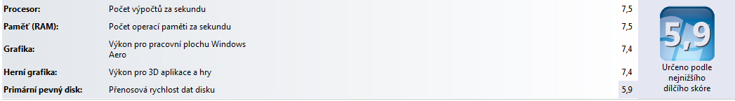 takže můj výsledek je že nejmíň výkoná komponenta v mém PC je procesor, nádhera :-)