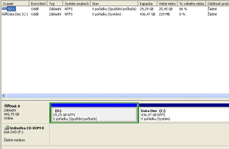 Chci mít dva disky. Jeden na data D a druhý na OS a programy C.