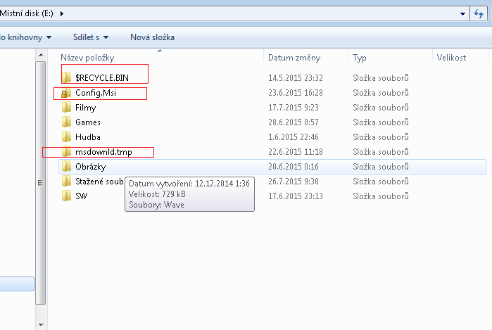 Zatím nevyskočila. Jen na nesystémovým disku E jsou nějaký složky, které tam předtím nebyly. Můžu je smazat?