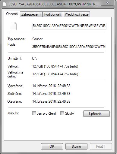 Ahoj, poslední týden zaznamenávám pokles výkonu PC, obzvlášť co se týče rychlosti Google Chrome. No a dnes jsem zjistil, že mám o 120 GB méně na disku. Nemusel jsem ani pořádně hledat, abych zjistil o co jde, prostě se mi na disku C: zjevil soubor o velikosti 120GB. Jen tak.
