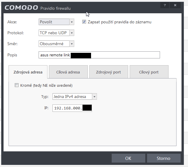 Re: Povolení příchozího spojení na Comodo Firewallu