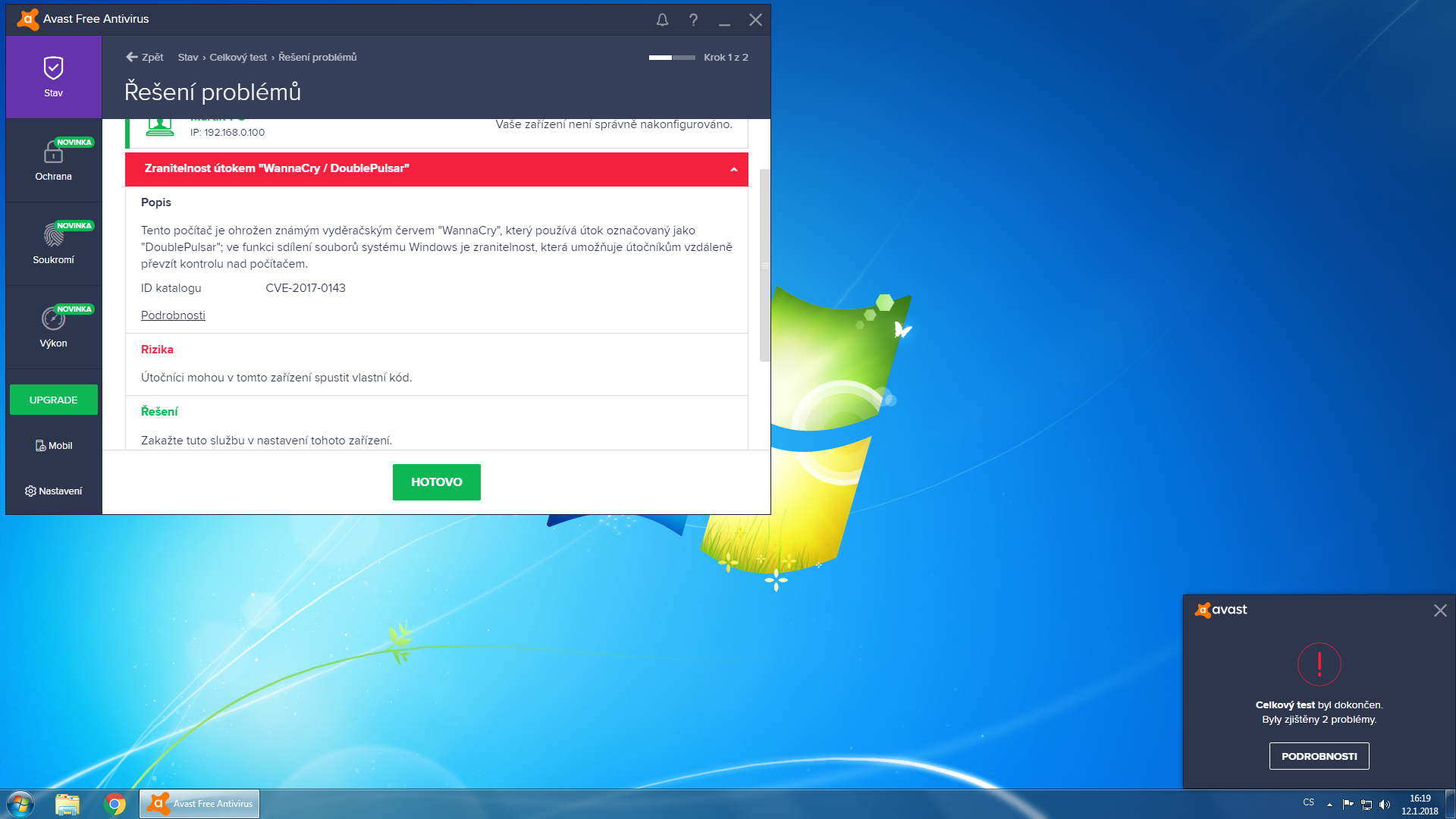 Ahoj, právě jsem reinstaloval Windows 7. Po instalaci Avastu a dokončení testu mi vyskočilo tohle (viz. příloha). Je to zlé?