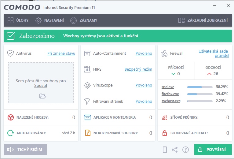 Comodo Internet Security obsahuje antivir, firewall, browser a jeste neco dalsiho.