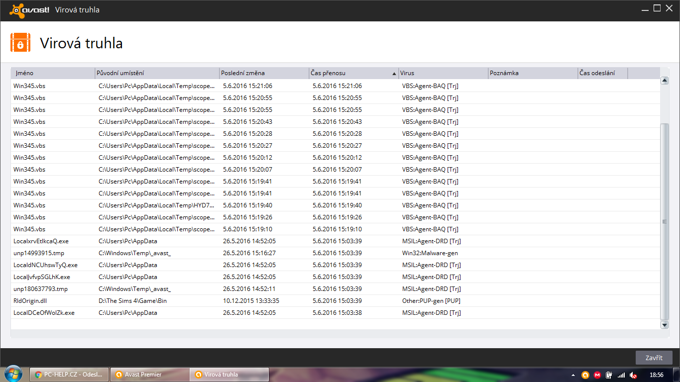 Na to jsem dávala úplný test systému. Tam mi to nalezlo 11 infikovaných souborů. Dávala jsem je do truhly a 4 z nich nešli. Vše bylo z místního disku C. Jen jedno jediné z D. Z D to bylo ale akorát dll. Kdežto to ostatní bylo to stejné výše zmíněné jen na jiných místech + pár malwarů aj. A něco bylo odchyceno dokonce i na avastu samotném.