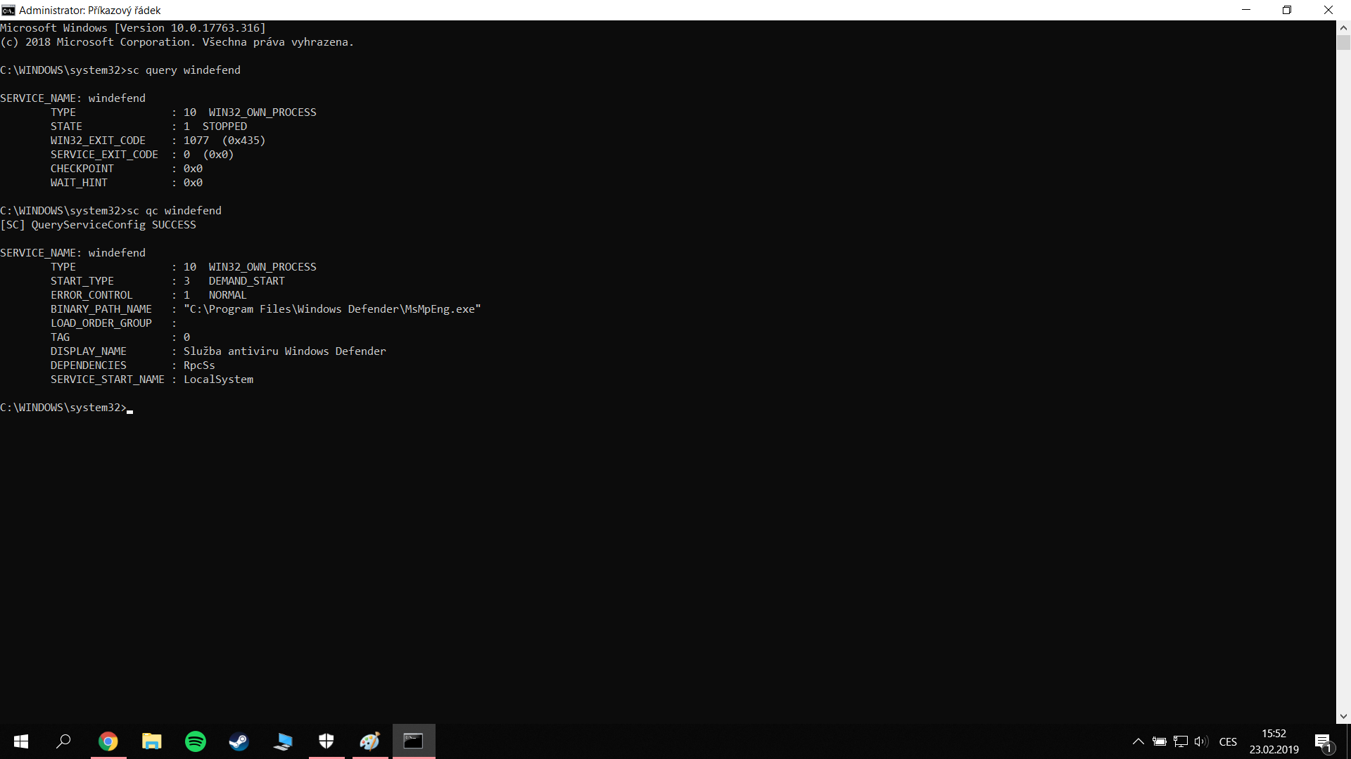 Navrhuji změnit pořadí slov v názvu na "Notebook není Windows Defenderem chráněn", což není dotaz ale fakt. Tahle atrapa je úplně k ničemu stejně jako většina produktů M$, urychleně nainstaluj skutečný antivirus!