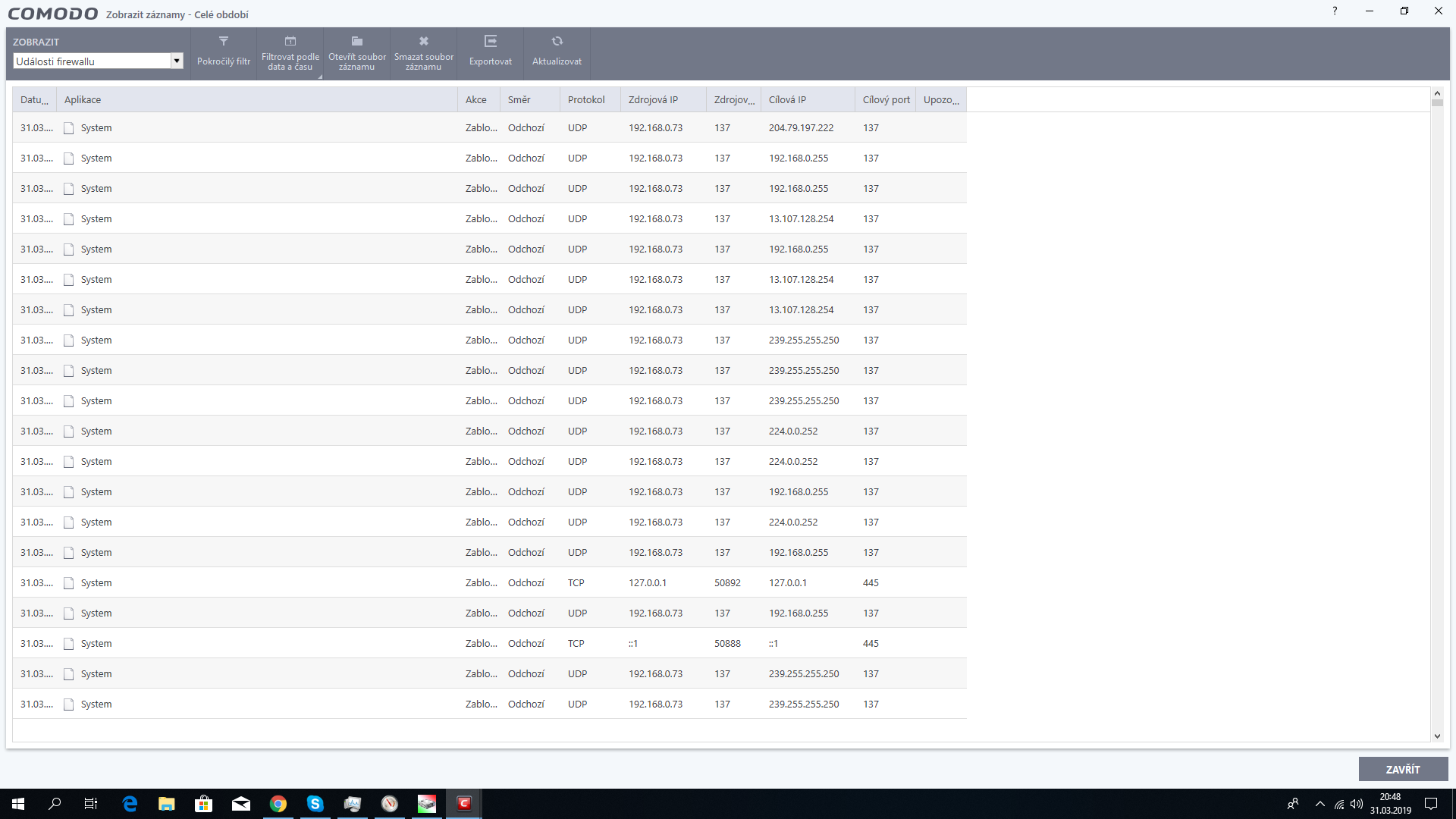 Jako antivir mám Kaspersky Antivirus. Ten bohužel nenabízí Firewall, tudíž jsem si musel nainstalovat Comodo. Po instalaci vše v pořádku, poté jsem si ale všiml že mi detekoval nějaké síťové průniky (hodně, síťových průniků). Vypadá to asi takto. Windows jsou čerstvě nainstalovány. Mám se něčeho bát? V Comodu se až tak nevyznám
