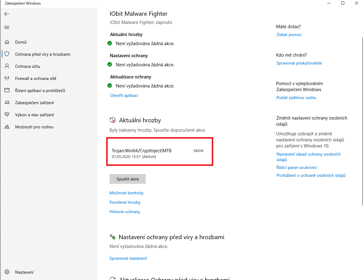 Počítač začal víc hučet a pořád mi vyskakuje v panelu ochrana před - Win64/Cryptinject!MTB - Wdf15520.sys