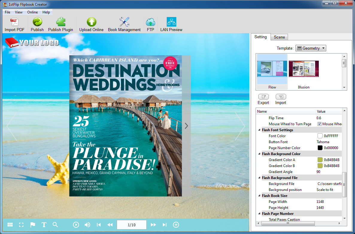 1stFlip Flipbook Creator for PC helps you to turn static PDF file into digital Flash & HTML5 page-flipping magazines, brochures, catalogs, flyers, presentations, e-books, newspapers, photo albums etc. One-click upload page-flipping books to 1stFlip server or own web host with the built-in FTP client. Read these flipbooks on your desktop, tablets and mobile devices, just like reading real books.