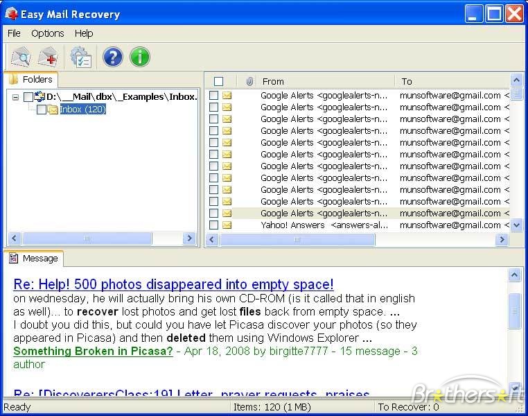 Easy Mail Recovery je program pro aplikaci Microsoft Outlook a Outlook Express . Je vyvinut s cílem pomoci každému uživateli obnovit jejich e-maily v krátkém čase. Program pracuje s PST a DBX, EML, TXT, VCF soubory a obnoví tolik dat, kolik je to možné.