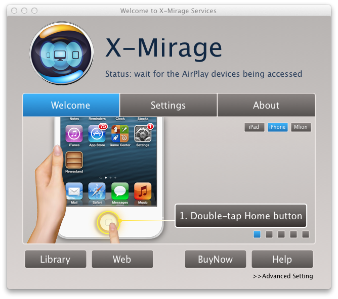 X-Mirage turns your Windows PC into an AirPlay receiver for mirroring whatever on your iPhone, iPad or iPod screen – apps, games, photos, videos, presentations, websites and more to the bigger screen. X-Mirage receives AirPlay contents in full HD 1080p high-definition. Make demo videos, app design or showcasing, record lessons for students, record iOS games, iOS app tutorials. Whatever you do on your iOS devices can be recorded, then exported.