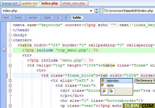 HippoEDIT is Windows text editor for programmers and power users. One can use it as full featured IDE with support of projects, external tools and auto completion, or as simple source code viewer for web browsers and shell. With HippoEDIT, you can open large log files, view and edit Unicode texts, open files in different encoding and line break styles.
