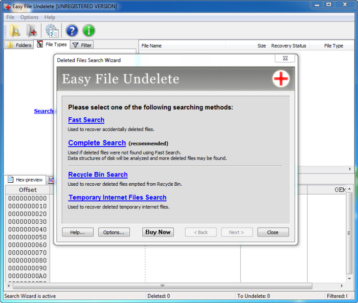 Easy File Undelete je program pro obnovení vymazaných souborů.