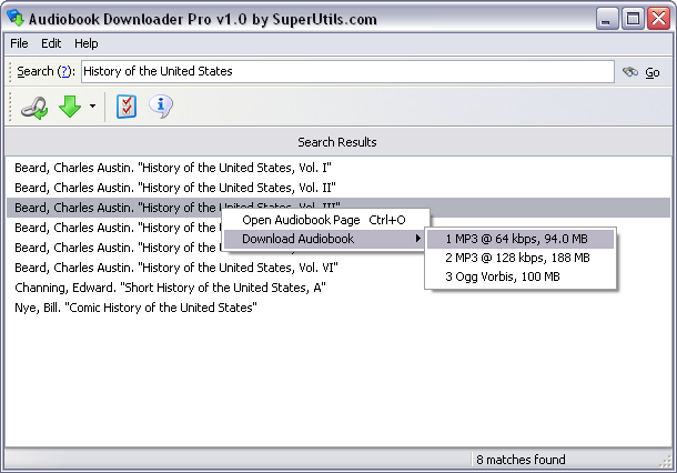 Audiobook Downloader Pro je rychlý a pohodlný stahování manažer zdarma, audio knihy od LibriVox a Internet Archive katalogů. To vám umožní efektivně najít audioknihy, které vás zajímjí a rychle si je stáhnout pomocí vícedílné multithreading techniky. Dnes navíc hra: