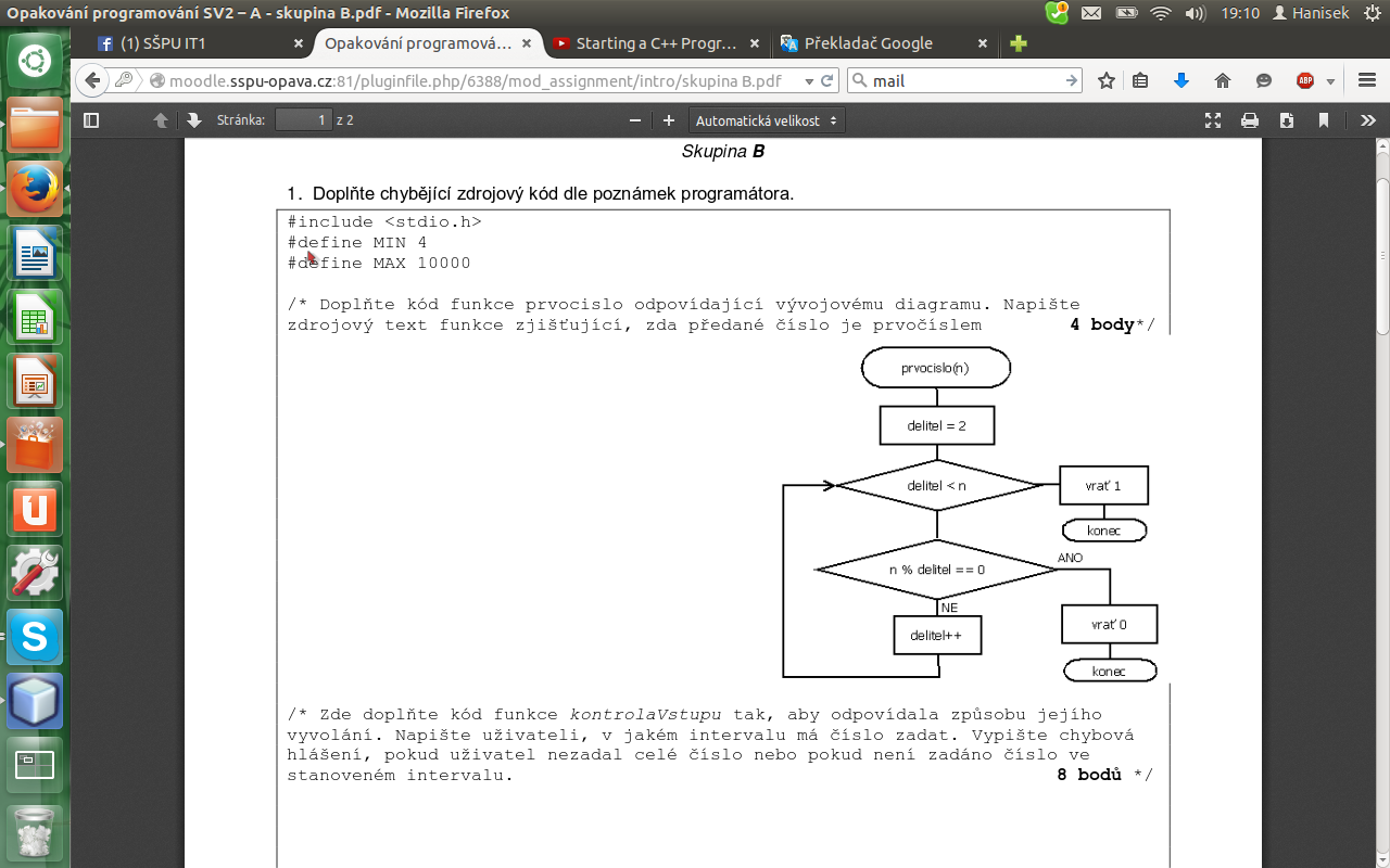 Tak první úkol, ten je jasný. Tam už máš vlastně půlku hotovou, protože nemusíš vymýšlet algoritmus, jenom nadatluješ kód podle zadaného flowchartu.