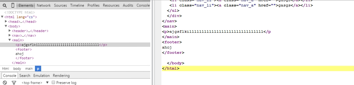 Tagy jsou v browseru uzavřeny jinde, než v html