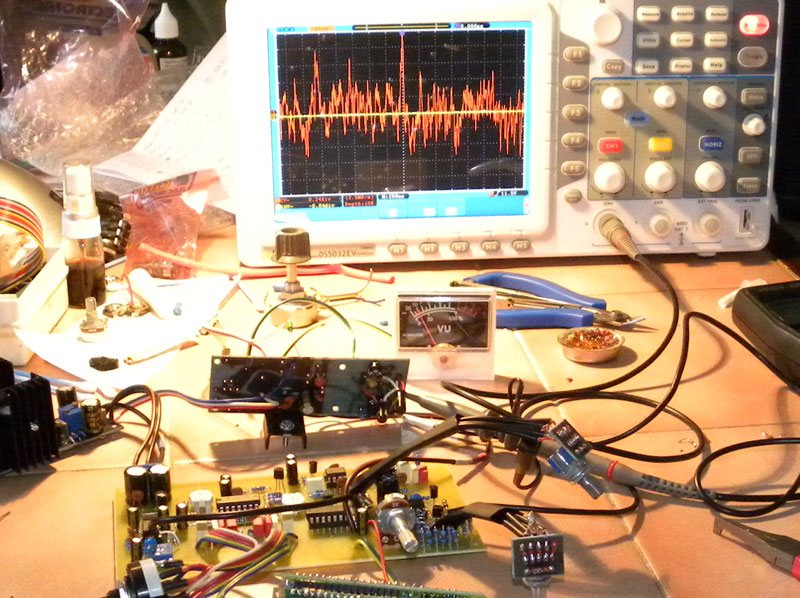 A doplnil jsem o měření výstupního napětí - zde jsem z cenových důvodů použil VU metr za cca 50,- Kč. Zde ještě musím nakreslit jinou stupnici.
