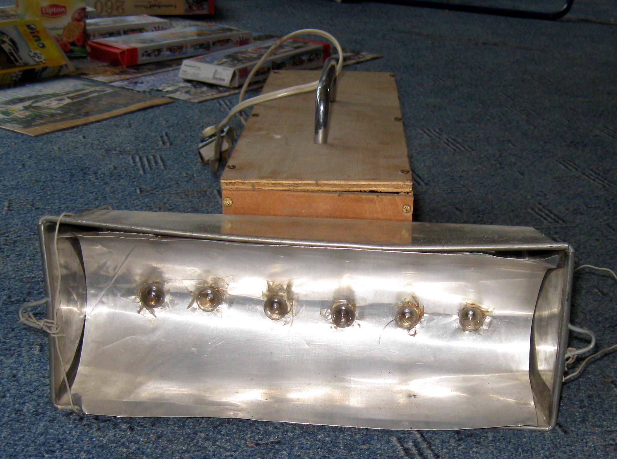 Před pár lety, jsem začal s projektem silné svítilny. Je to megalomanský projet a tak po cca 3 letech bádání konečně pomalu začínám s fyzickou stavbou. Inspirace přišla na srazu fotonmagu, kam jsem přines svoji starou žárovkovou svítilnu, jenž jsem vyrobil někdy kolem let 1987. Byla napájená 12 plochými bateriemi a jde svítit jednou, třema či všemi šesti žárovkami. Hmotnost rovných 5kg.