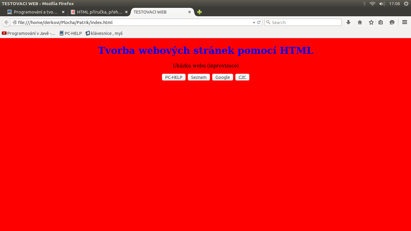 Bylo by dobré, než se pustíš do buttonů a podobných čudlíkovin, ukázat ještě pár základních věcí. Třeba odkazy jako takové, absolutní a relativní, případně kotvy v rámci jedné stránky.