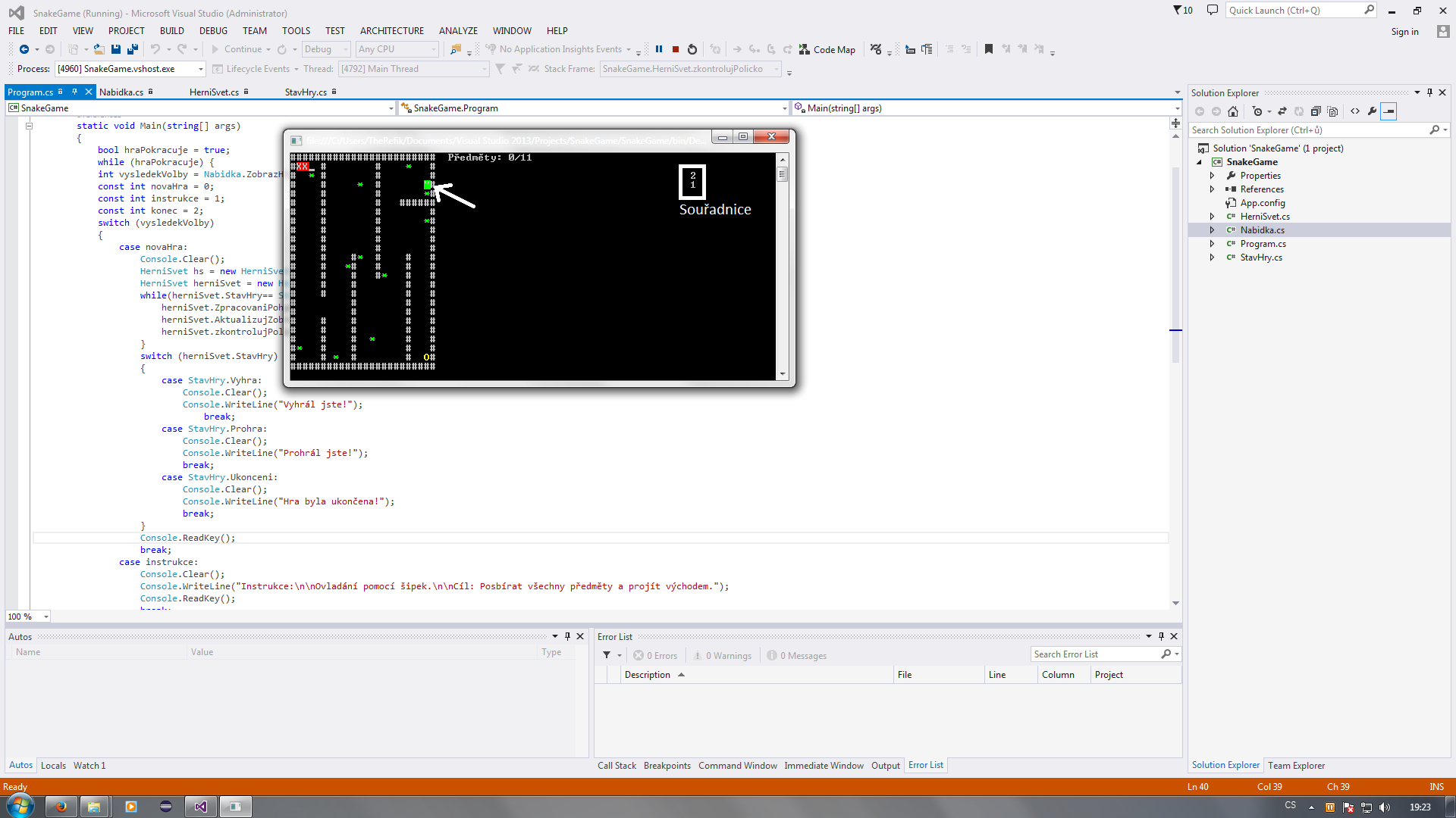 A ještě tam je takovej malej problém, který mě ani zas tak tolik netrápí. Jde o to, že když přejdu ze souřadnice 9 na 10 a pak zpátky zase na souřadnici 9, tak se ale nezobrazí 9, ale 90. Čili, když přejdu z jednociferného čísla na dvojciferné, tak se mi na zpátek už na jednociferné nevrátí.