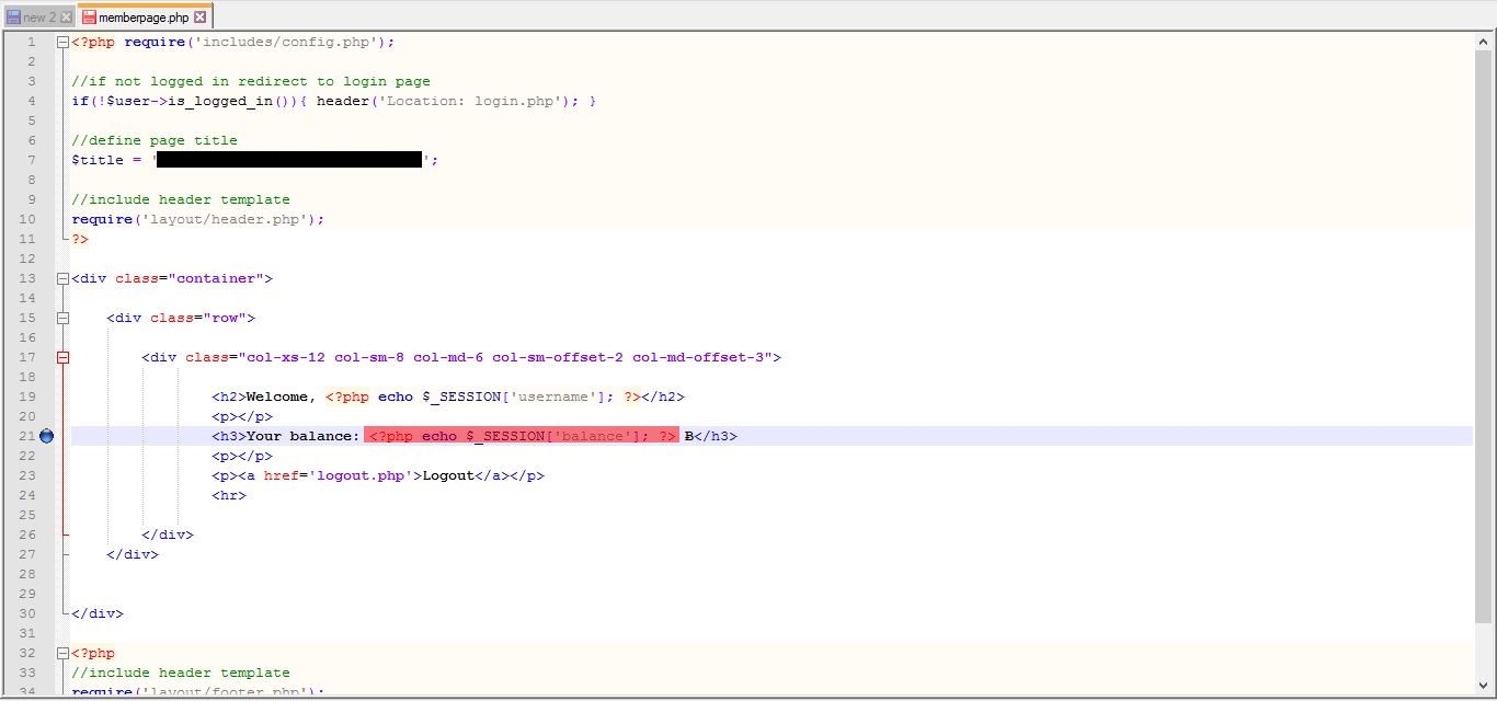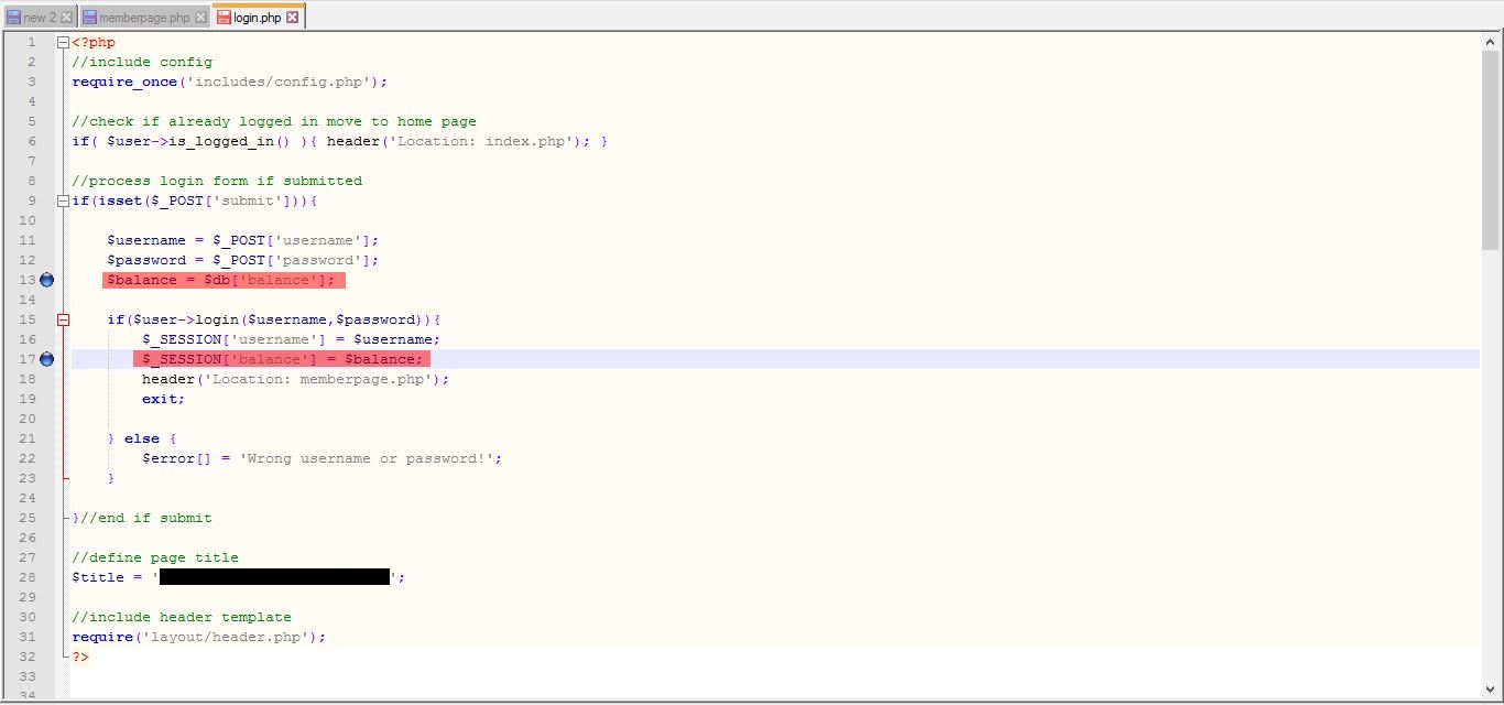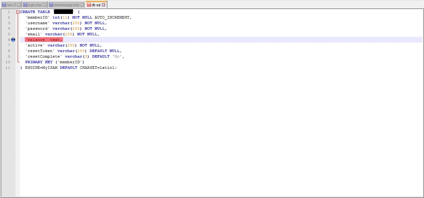 Zdravím, stáhl jsem si script na MySQL PHP Login/Register. Potřebuji přidat do stránky, kde je přihlášený uživatel stav jeho peněženky (viz. obrázek "memberpage"). Zkoušel jsem to nastavit v login.php (viz. obrázek "login"), ale nějak to nefunguje :evil: . Potřeboval bych, aby se to nějak připojilo a vytáhlo si to z databáze tu informaci o stavu peněženky daného uživatele... Napište kdyby jste potřebovali více informací.