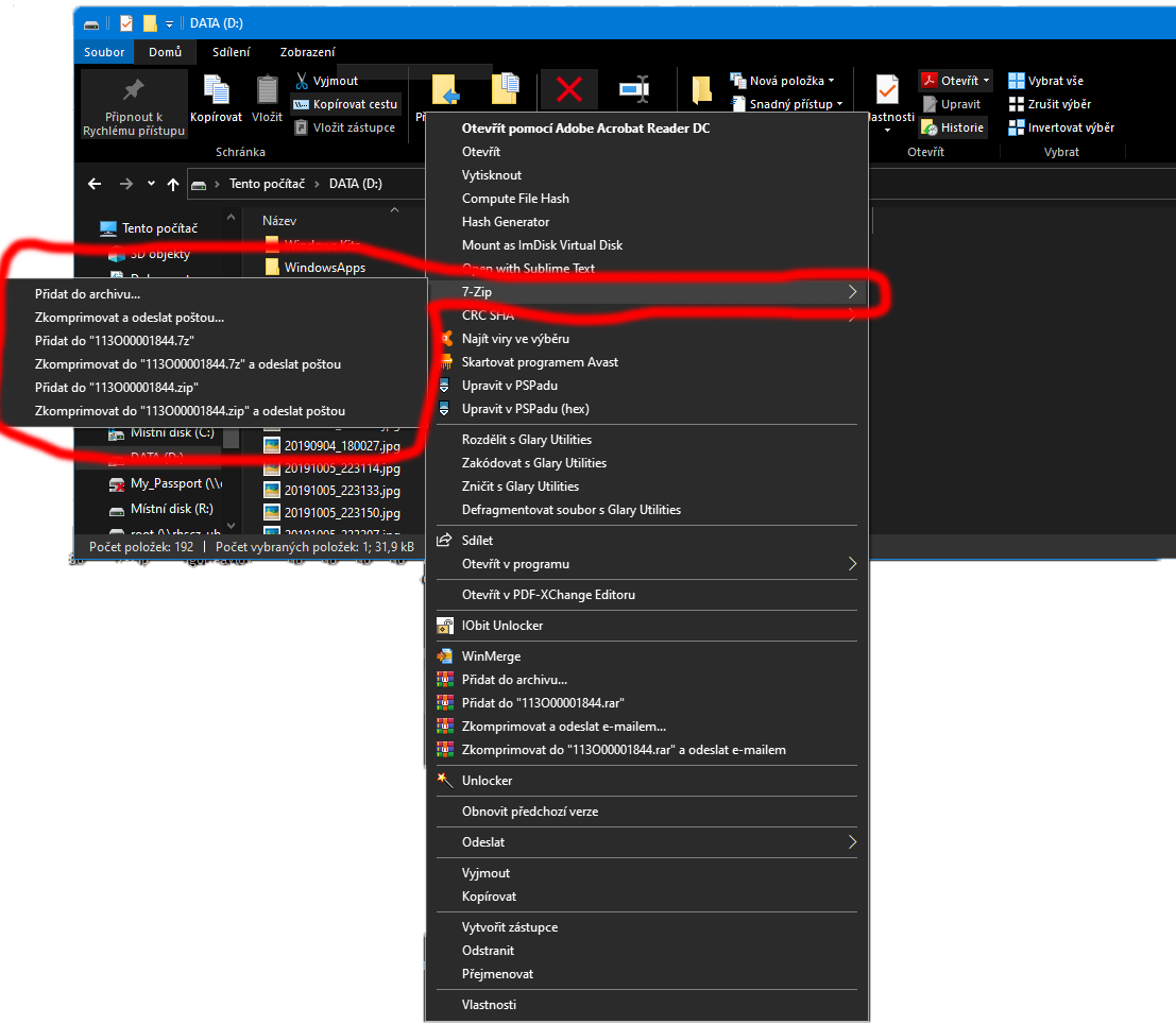 kde %1 je argument a musí to být vybraný soubor na kterém byla vyvoláno kontextové menu např.