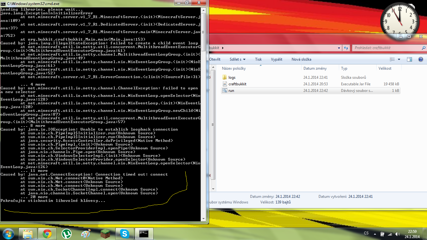 Prosím pomohli by ste mi ? Když jsem si chtěla založit bukkit server 1.7.4 tak sem do run.bat napsala : @ECHO OFF