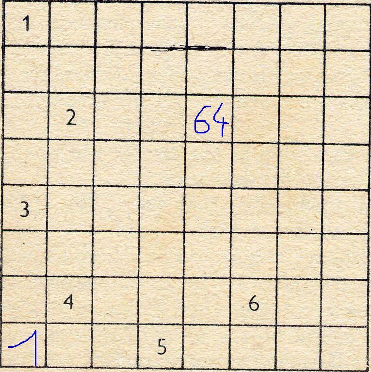 Ten hlavolam s koněm je dobrej a ať vypadá složitě, jednoduchej. Já se toho nezúčastním, jelikož jsem lama a neumím pak udělat tu tabulku /scaner nemám/. :oops: Ale můžu poradit.