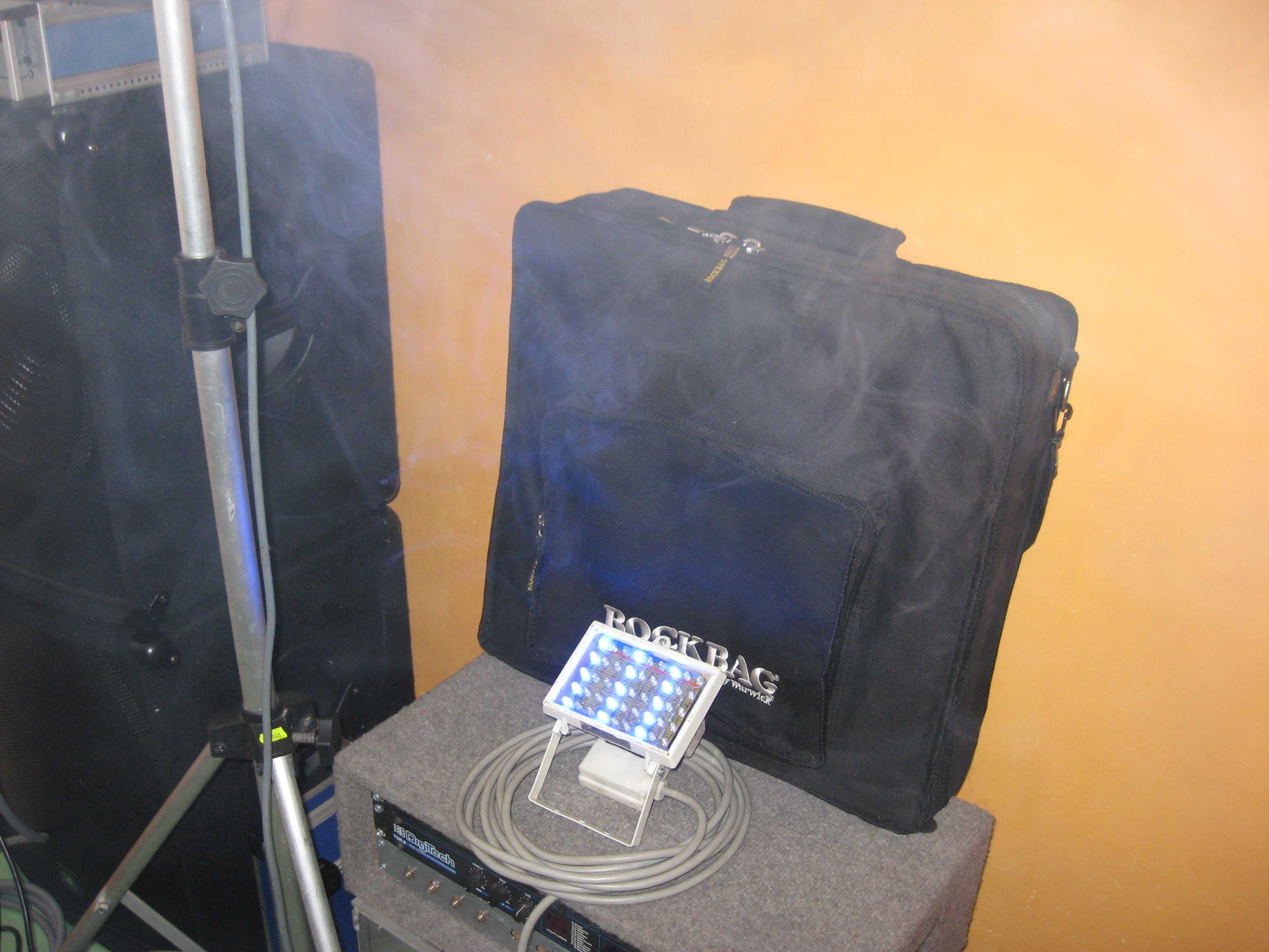 Pro ilustraci přikládám své řešení (zapojení o stránku dříve). V PVC žlabu je 6 reflektorů po 7 vysocesvítivých LED různých barev a jeden se 12 čirými. Ve 150W halogenové vaně je po 15ti R+B+G LED, které lze vzájemně kombinovat a vytvořit tak celkem 7 barev pro nasvícení plochy. Vše je provedeno ve dvou exemplářích a je tak vhodné pro nasvícení barové kapely, nebo domácího mejdanu. Nemusím snad zmiňovat, že světla nejlépe vyniknou za tmy při použití umělé mlhy, nebo v zahulené místnosti