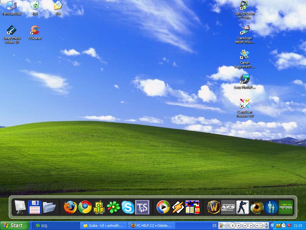 Moje plocha, nemohu si vybrat žádný obrázek tak používam výchozí tapetu a lišta RocketDock parádní prográmek doporučuju !!!