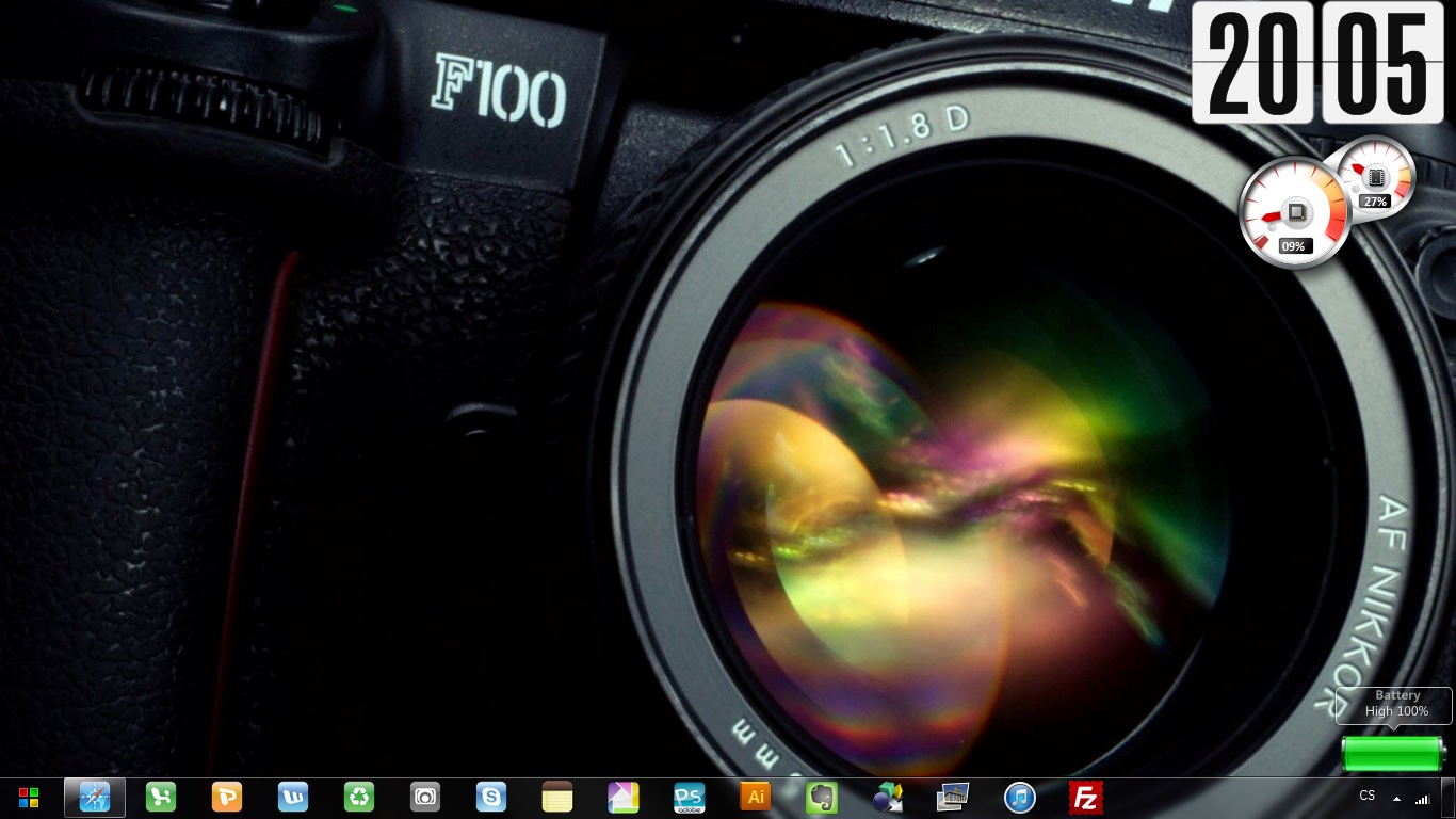 Ikona od Woken změněna programem Windows start orb changer, hodiny/baterie jsou rainmeter, cpu/ram vytíženost je origo win miniaplikace a některé ikony dole jsou pozměněné, ale vzhledem k tomu, že plánuju nový pc tak už se o to moc nestarám :)