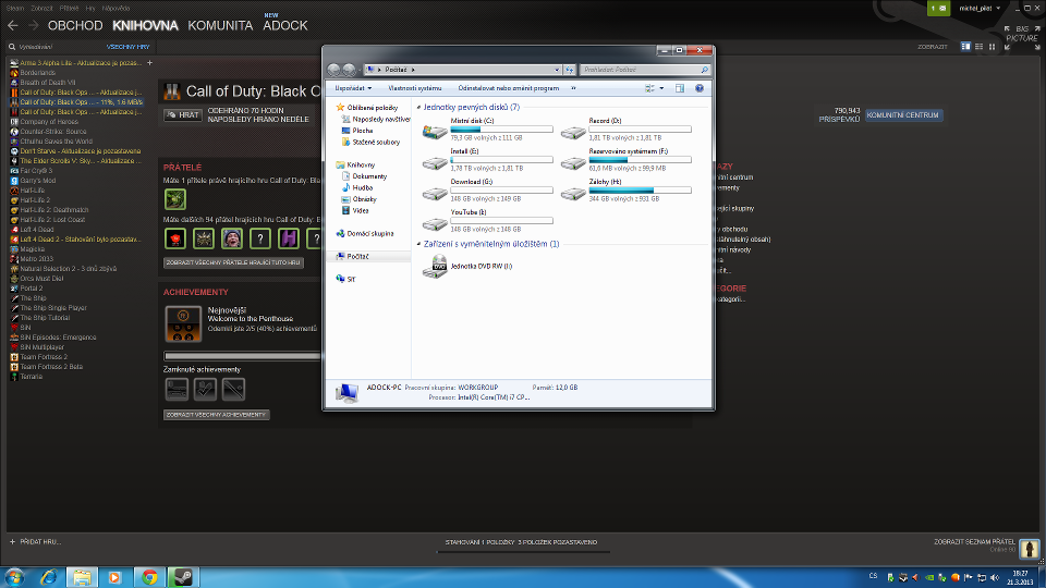SSD OCZ Vertex 4 - 256GB / HDD Seagate SV35.5 - 1TB / Win10 / Corsair 600T Graphite Series bílá / WD My Book Essential 2TB