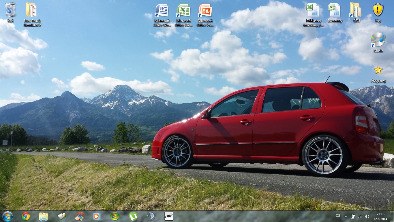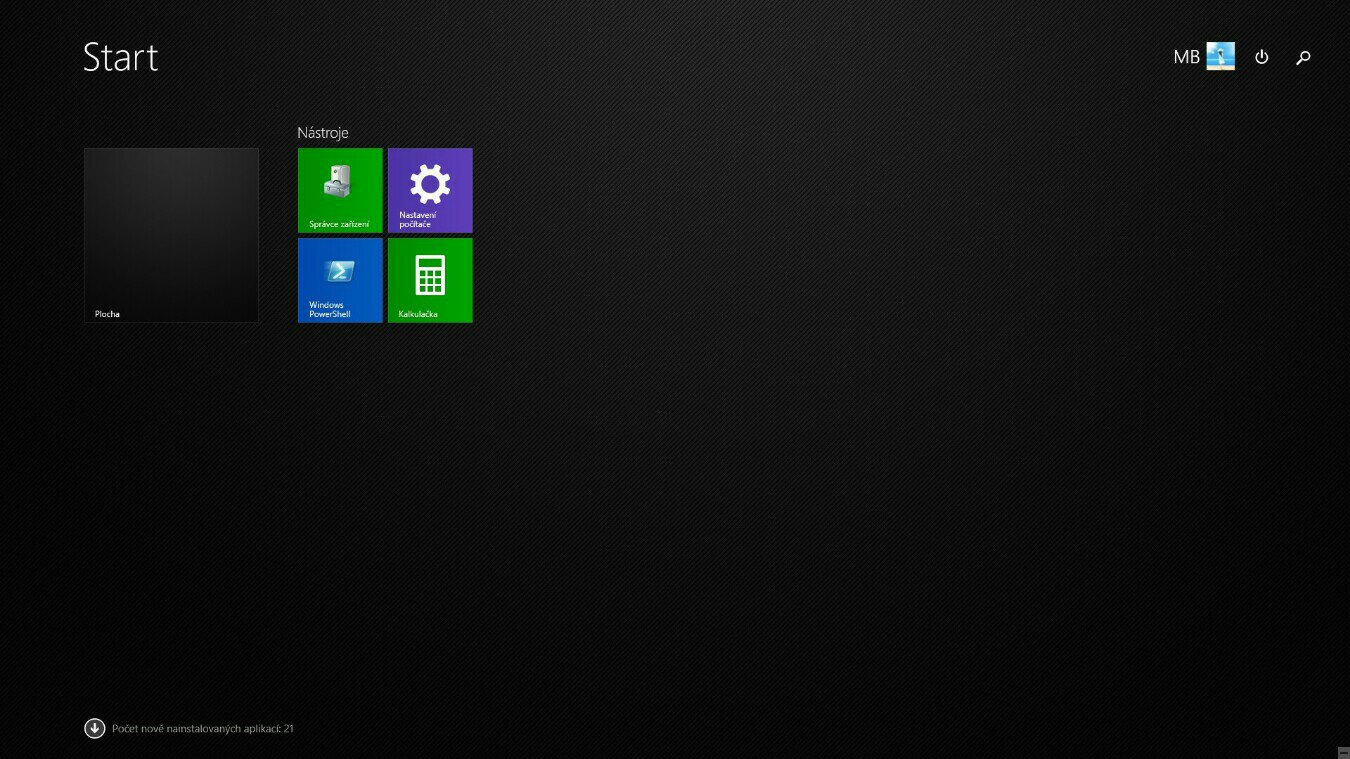 Moje plocha a Metro úvodní obrazovka. Musím rict ze na taskbar nahoře jsem si rychle zvykl