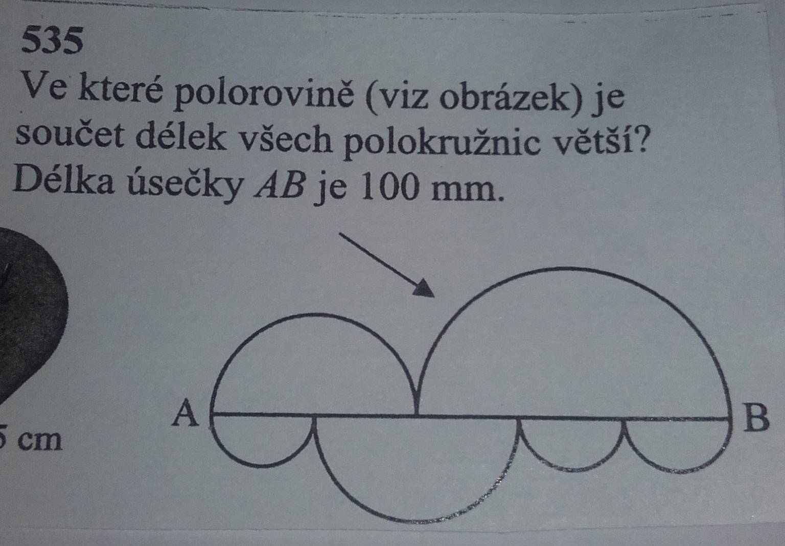 Ahoj, mám tu zadání, ve kterém mám vypočítat v které polorovině je součet délek všech polokružnic větší viz. obrázek, ale zásadní problém je, že nevím, jak přijít na to jaký má průměr ta daná polokružnice. Jak na to?
